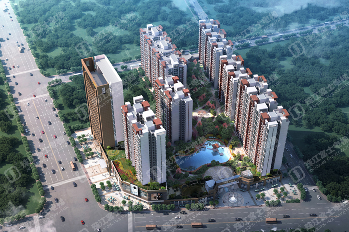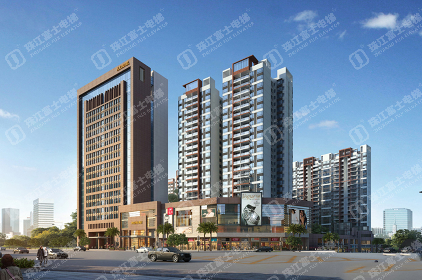 珠江富士電梯為該項目提供了22臺電梯產(chǎn)品:16臺GSTK1050kg、1.75m/s的高速乘客電梯,6臺GSTK1050kg、1.6m/s的無機房乘客電梯。