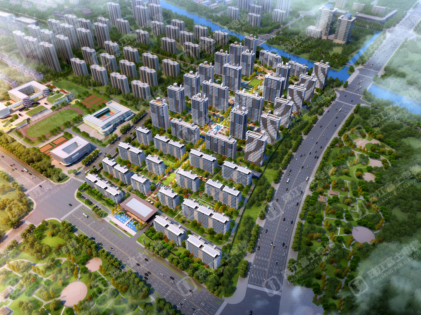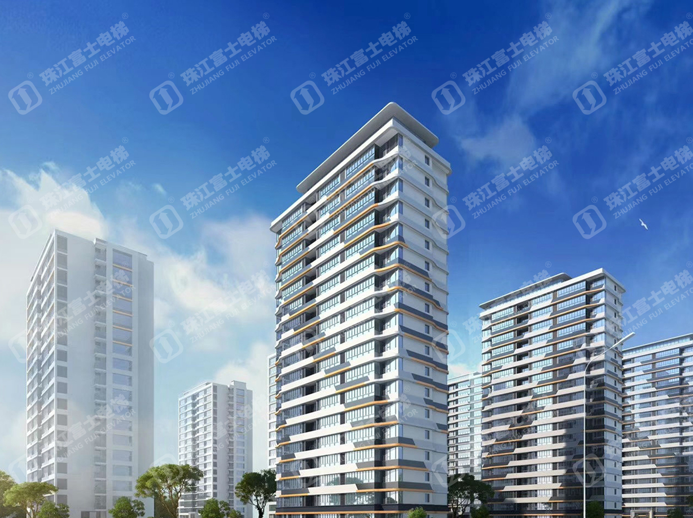 珠江富士電梯為該項目提供了18臺電梯產品:11臺GSTK1050kg、1.75m/s的乘客電梯,7臺GSTK900kg、1.75m/s的乘客電梯。